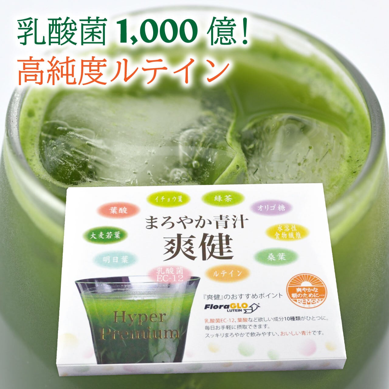まろやか青汁 爽健 Hyper Premium 30袋 大麦若葉 明日葉 桑の葉 乳酸菌 緑茶 イチョウ葉 マリーゴールド 葉酸 野菜 食物繊維 腸内環境 目の保護 ビタミン ミネラル ルテイン | リモンヘルスケア